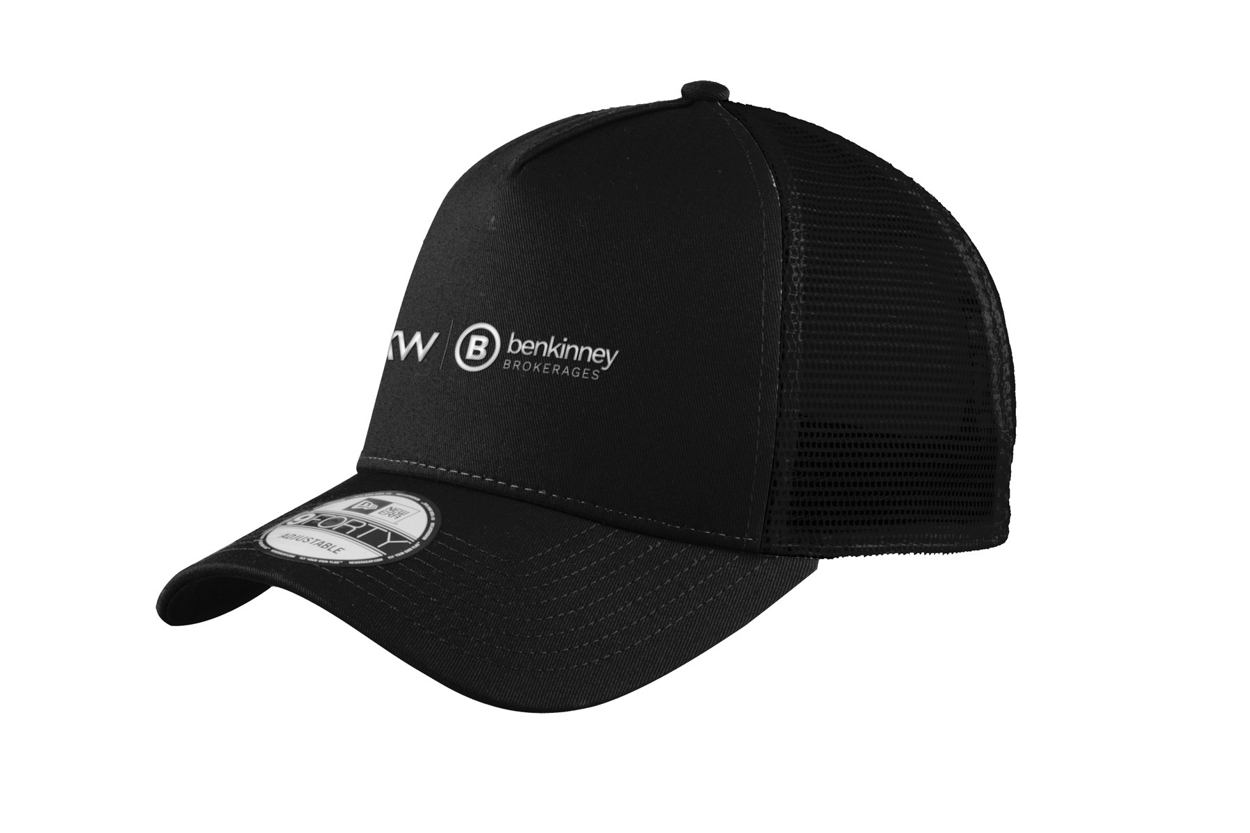 This New Era 9FORTY Adjustable Cap features an embroidered Ben Kinney Brokerages logo at the front panels with an adjustable closure at the rear. The 100% cotton in the front two panels and the 100% polyester for the mesh ensures that this cap is cool and comfortable and something you can wear all day.