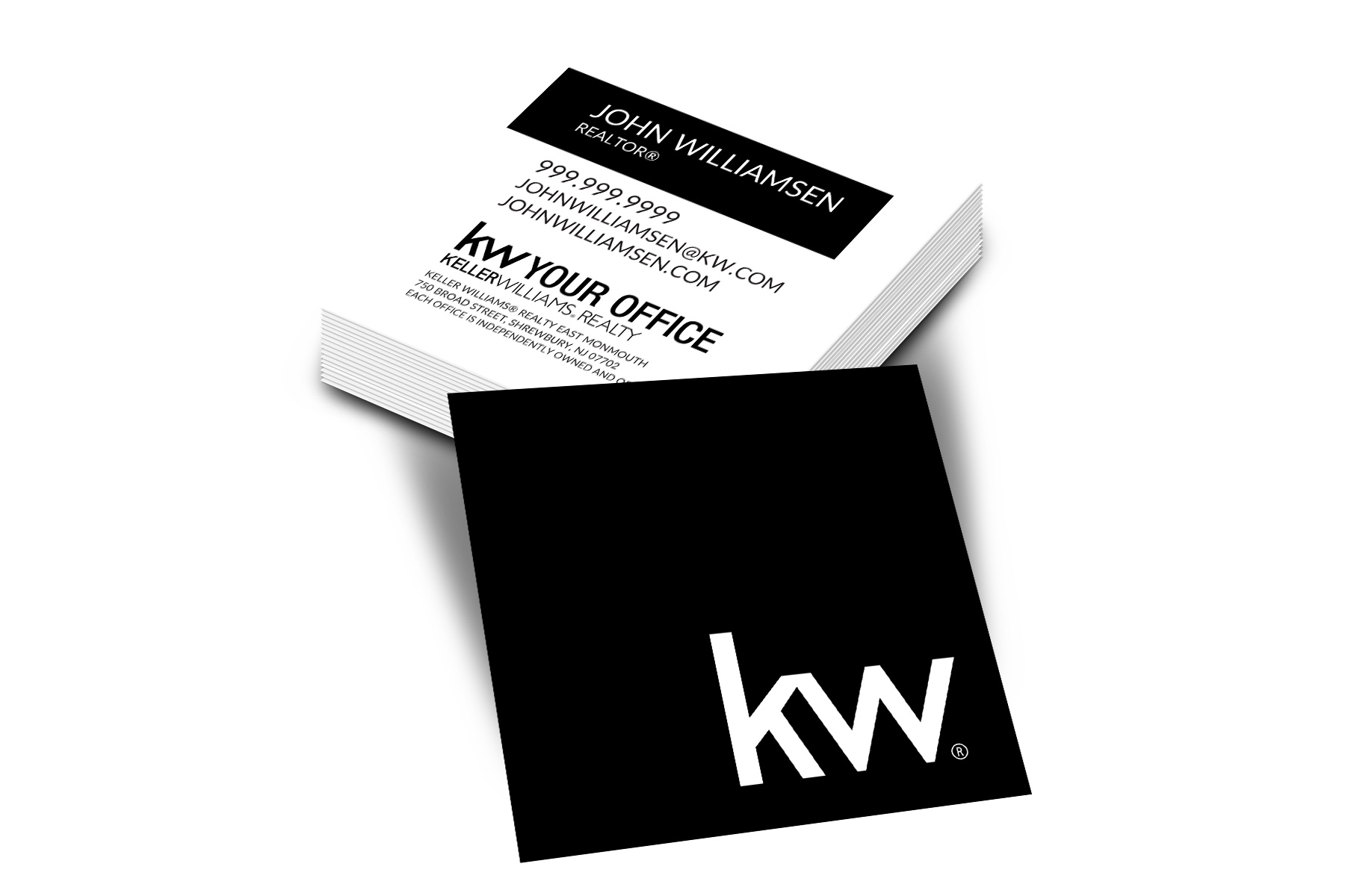 Description: Not all Keller Williams business cards are equal. Choose a bold, modern design that is guaranteed to stand out. The unique, square card organizes all of your contact information on the front in a crisp, clean design with easy-to-read fonts. The knock-out logo pops on the back in crisp white on a luxurious solid black background.