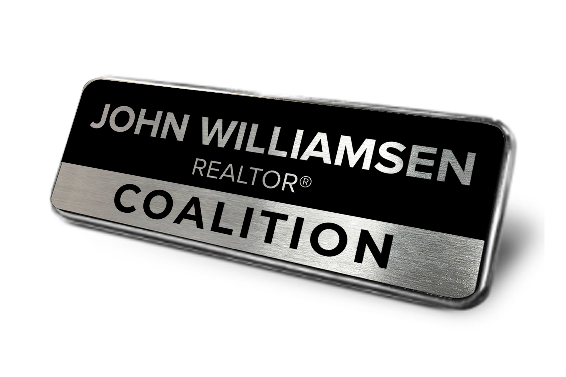 Coalition | Framed Name Tag – Black/Silver 1×3 Name Tag