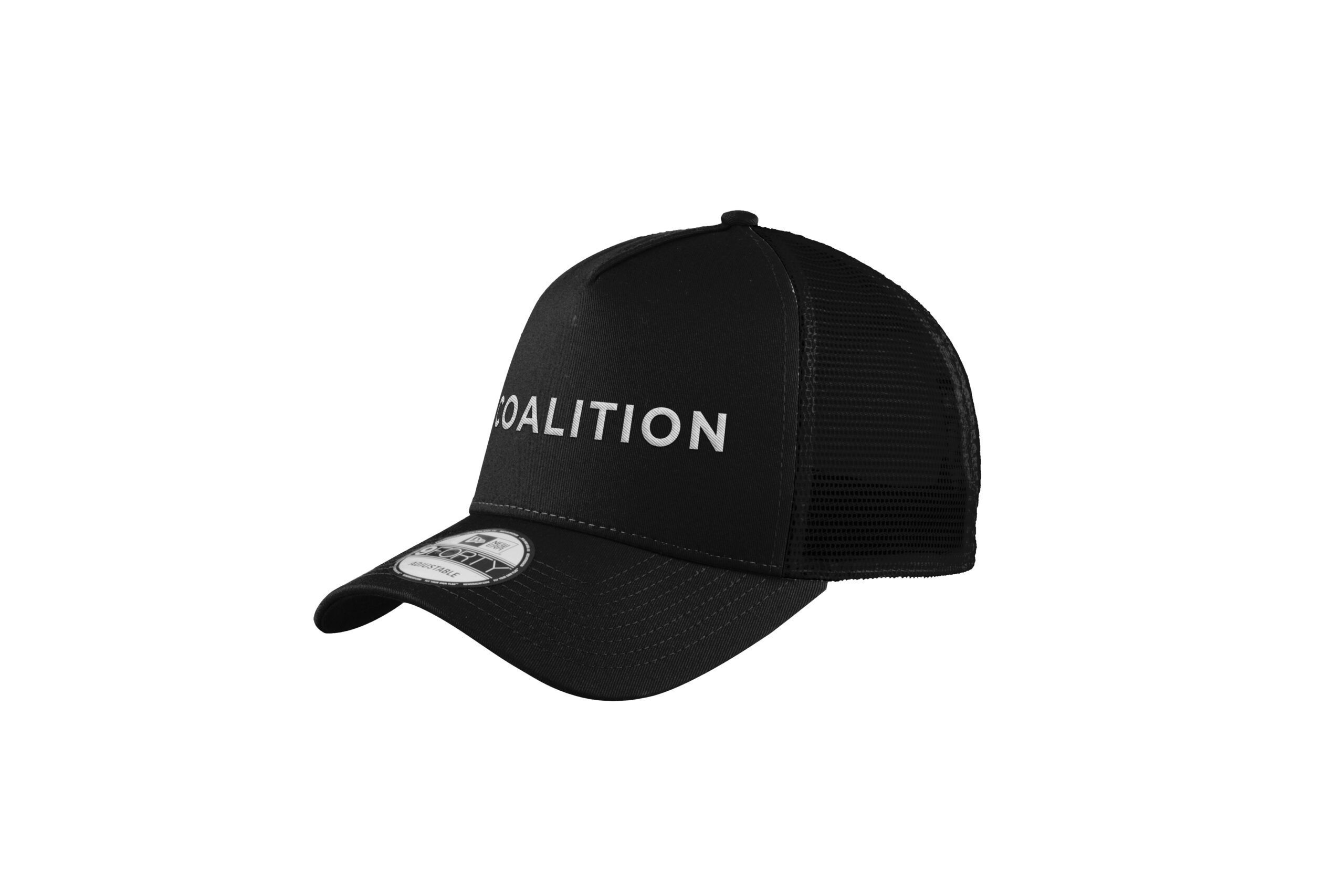 100% polyester mid and back panels, 7-position adjustable snap closure.