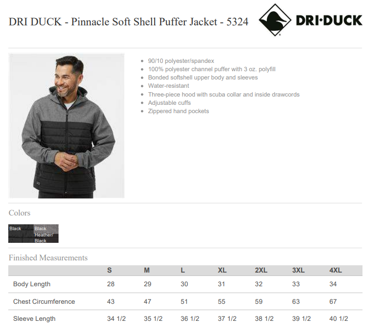 Forward Coaching | DRI DUCK – Men’s Pinnacle Soft Shell Puffer Jacket – Embroidered
