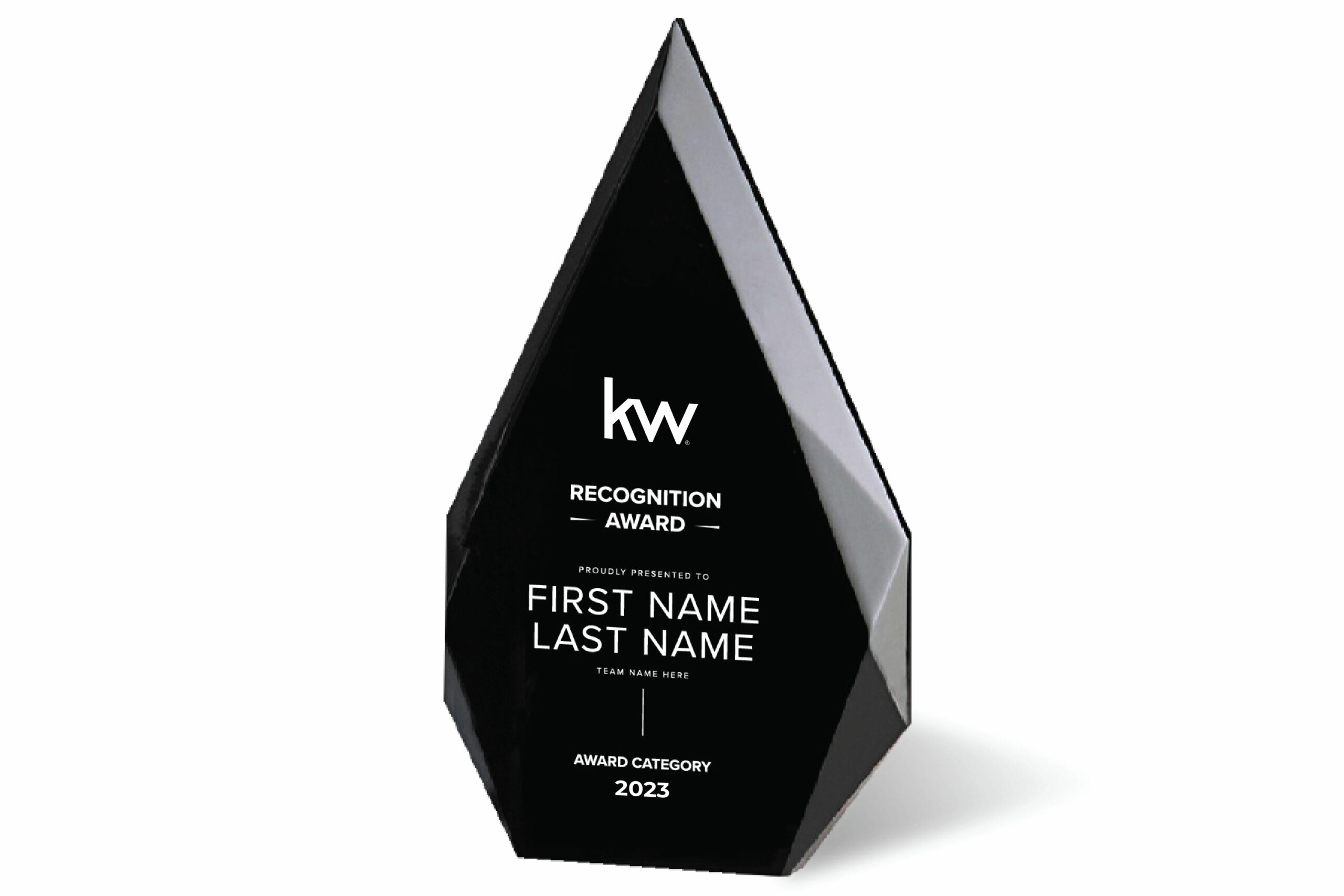 This award is a contemporary style, while it is clear, the back is silk screened black, making it anything but boring! The black accents create depth in this 1″ thick acrylic award. Each award is individually gift boxed. Custom engraving of the first and last name, team name and award category.