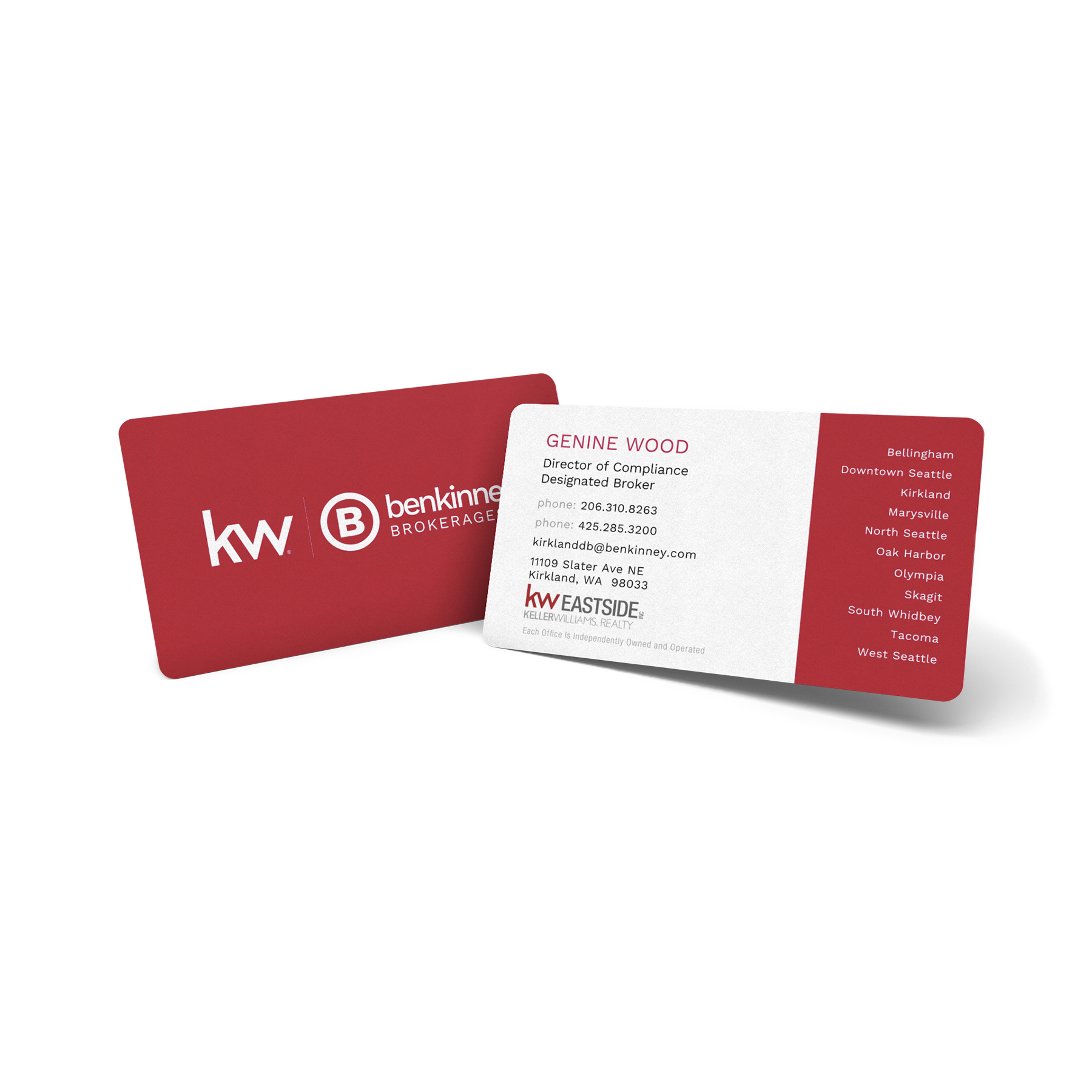 Ben Kinney Brokerage business cards are printed on a high-quality 16-point cardstock then silk laminated for a luxurious feel. The cards are then finished off with a 1/8″ rounded corner and are shipped out in 2-3 business days. Your cards will then be delivered via UPS ground within 1-5 business days.