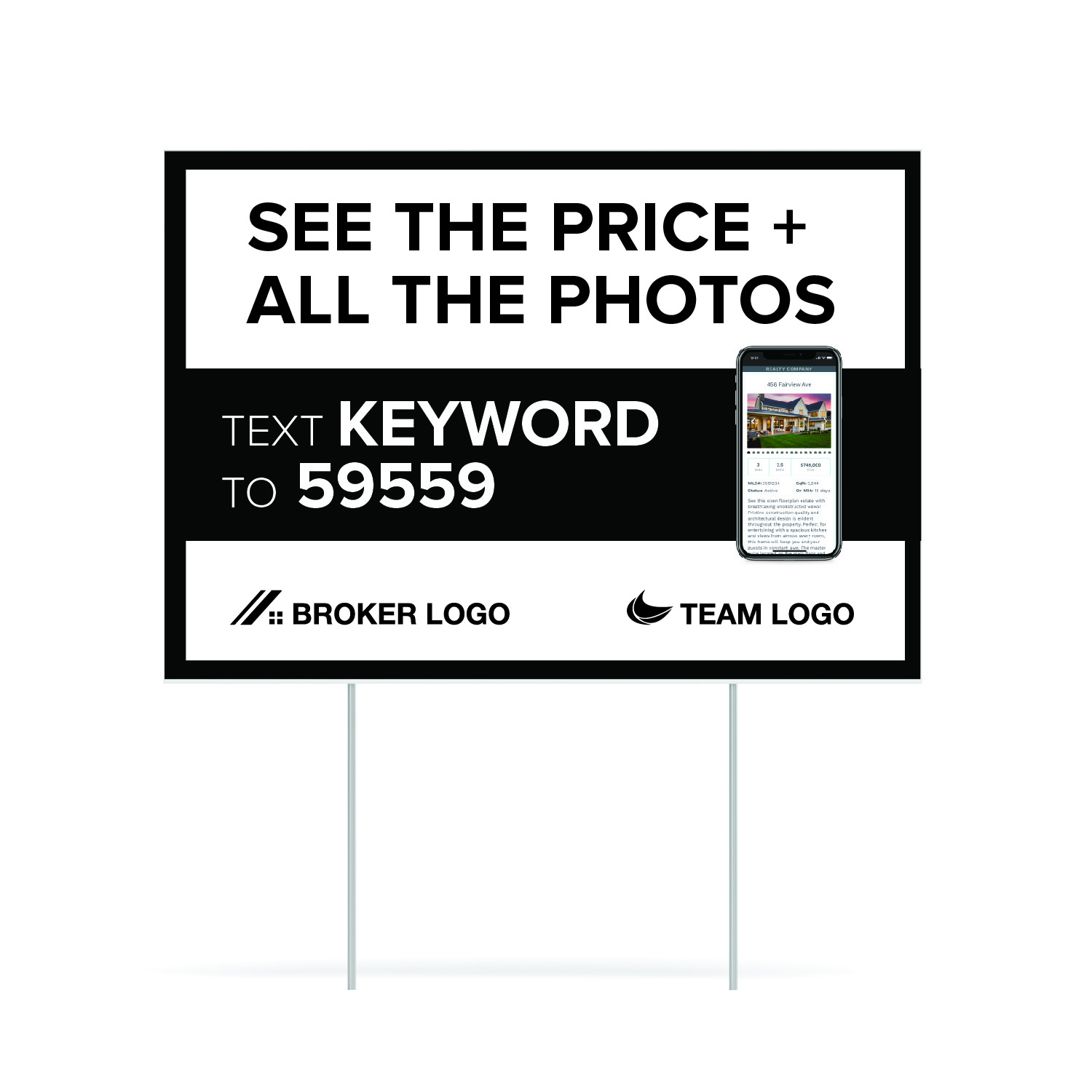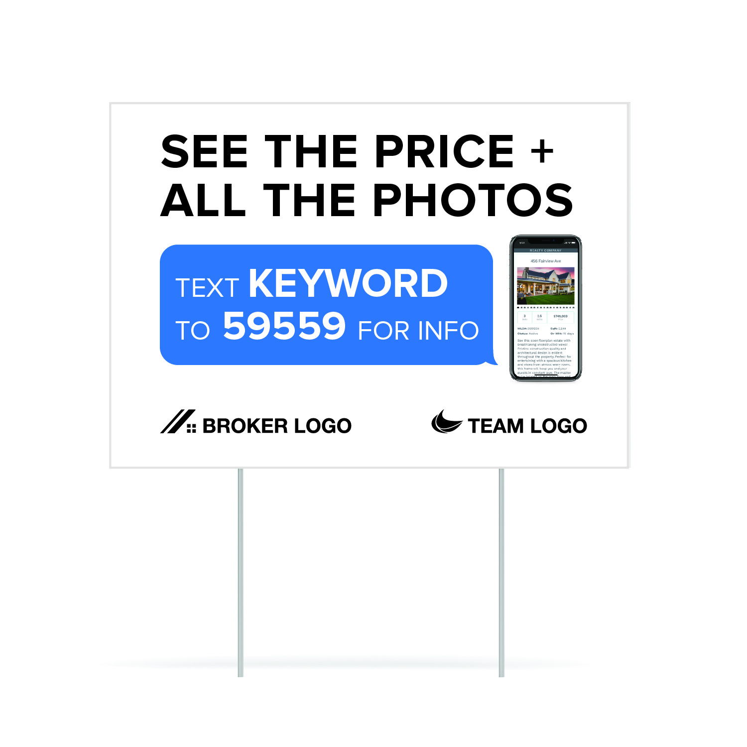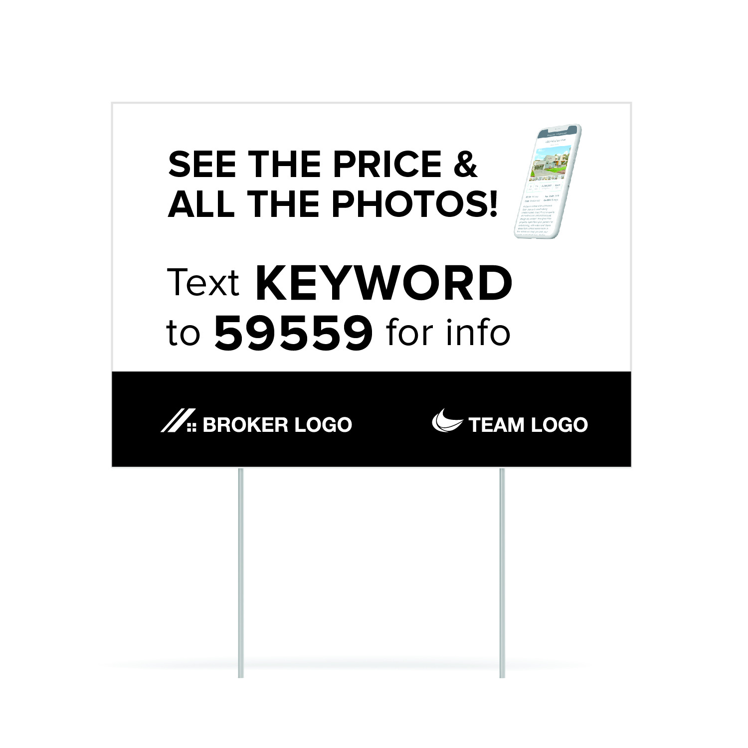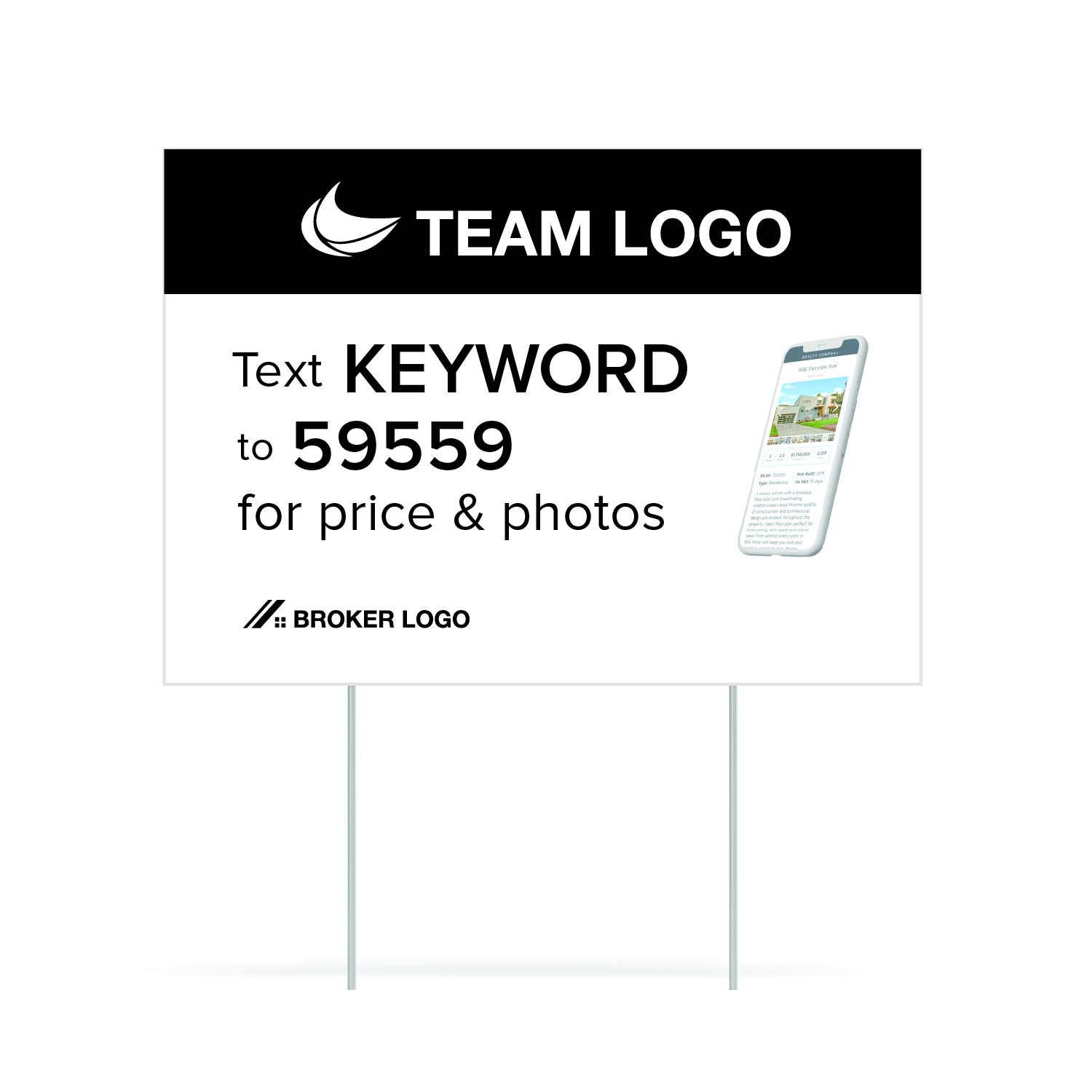 These 24×18″ double-sided yard signs are completely customizable and in full color on 4mm Coroplast with H-stakes. Order one for every listing and keep a few spare signs in the trunk of your car.