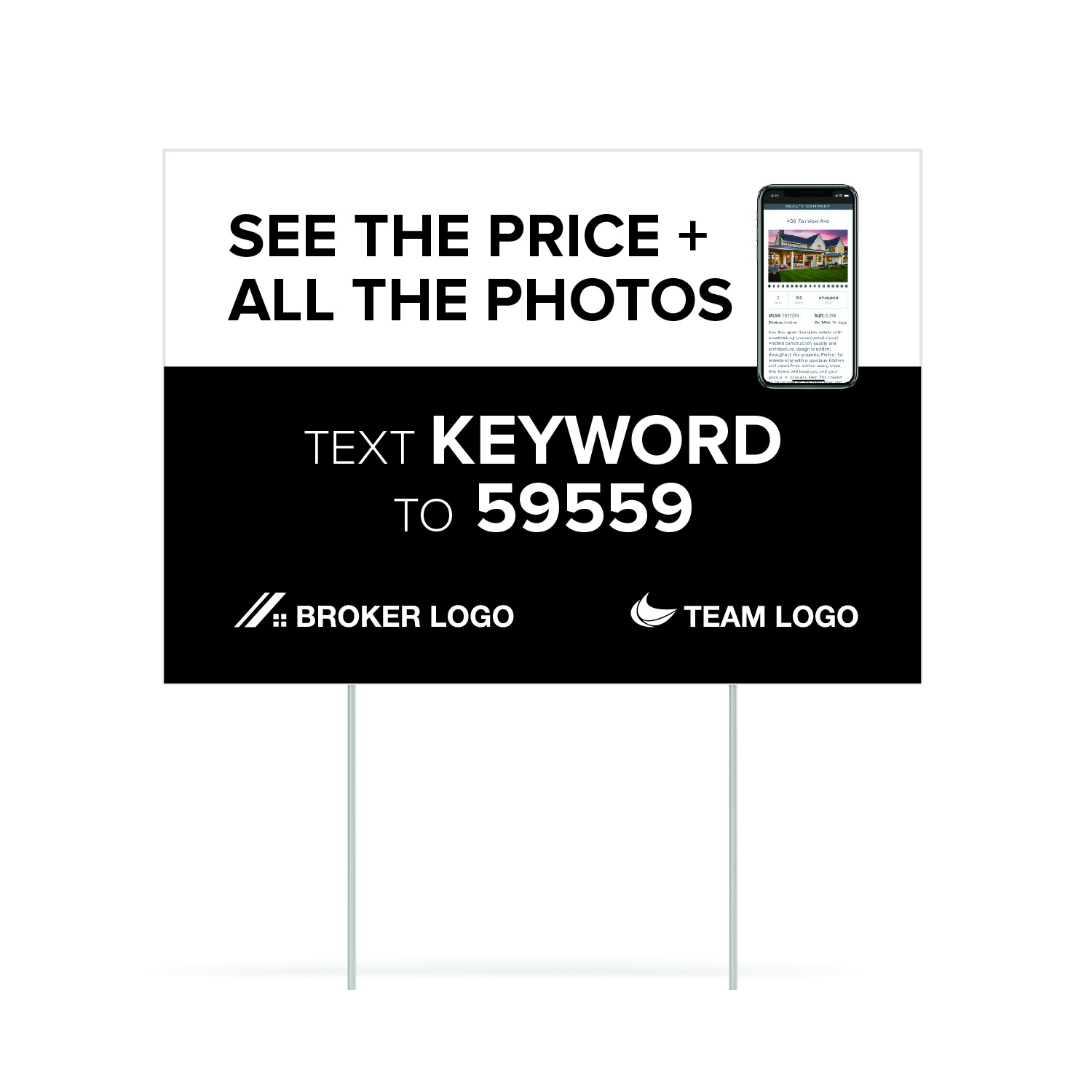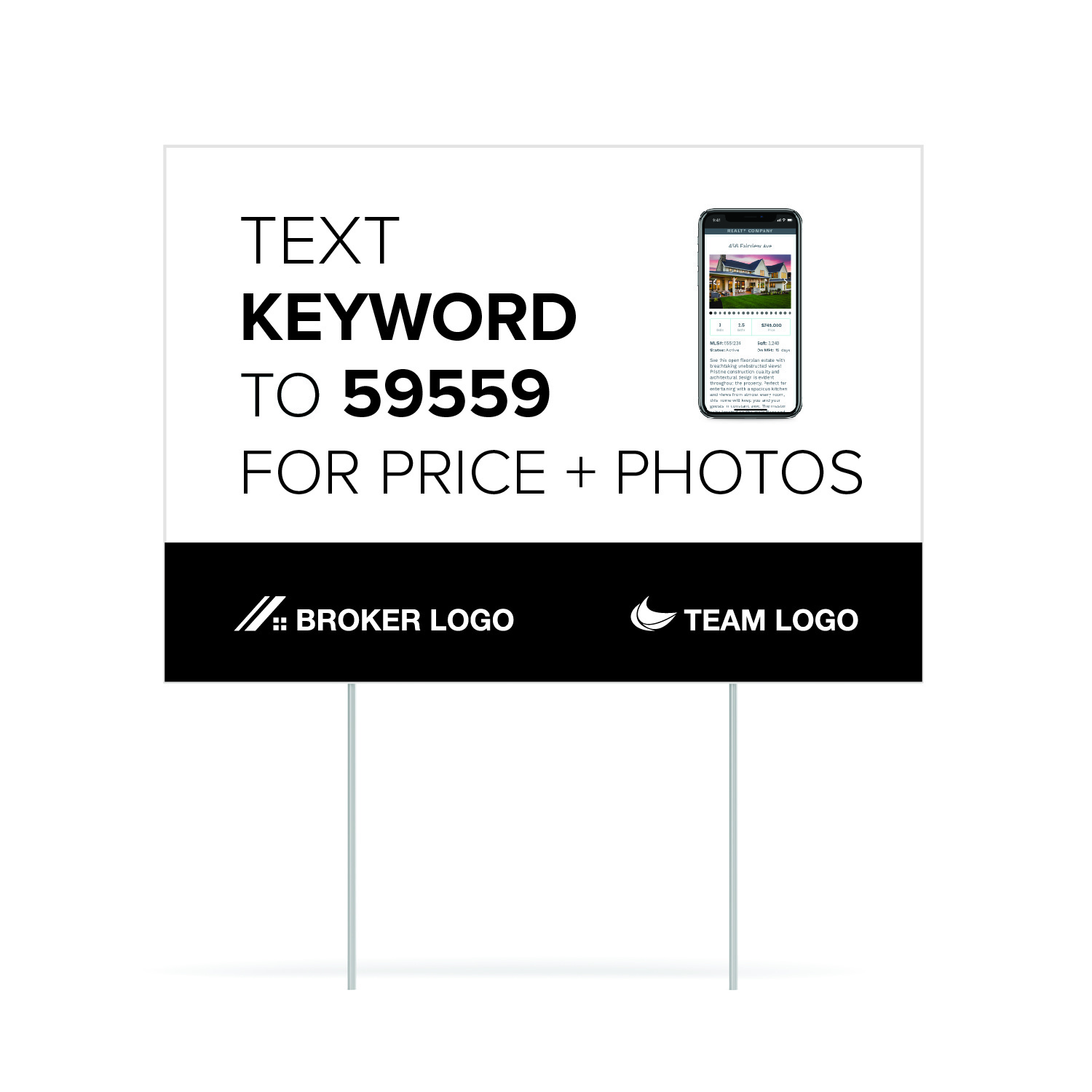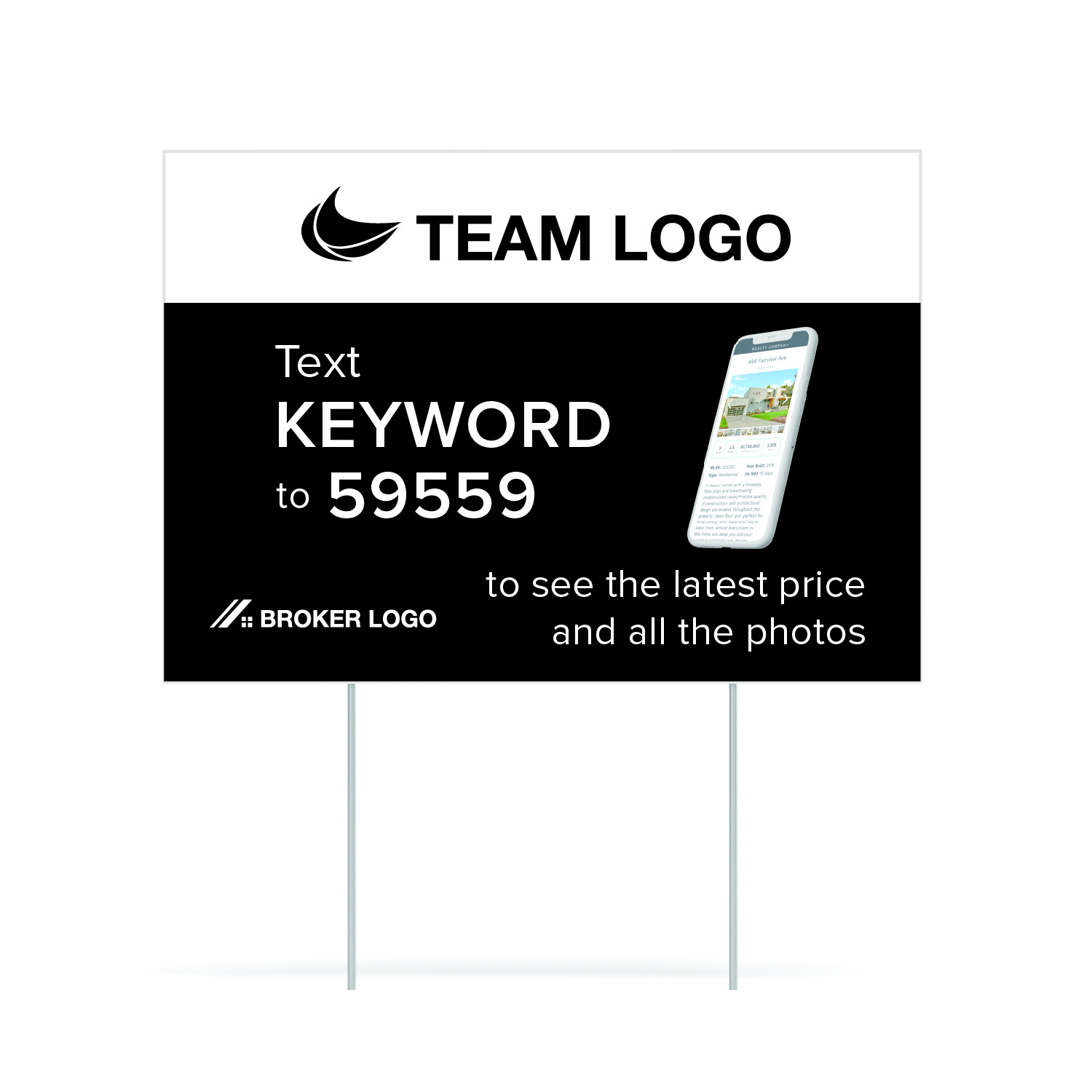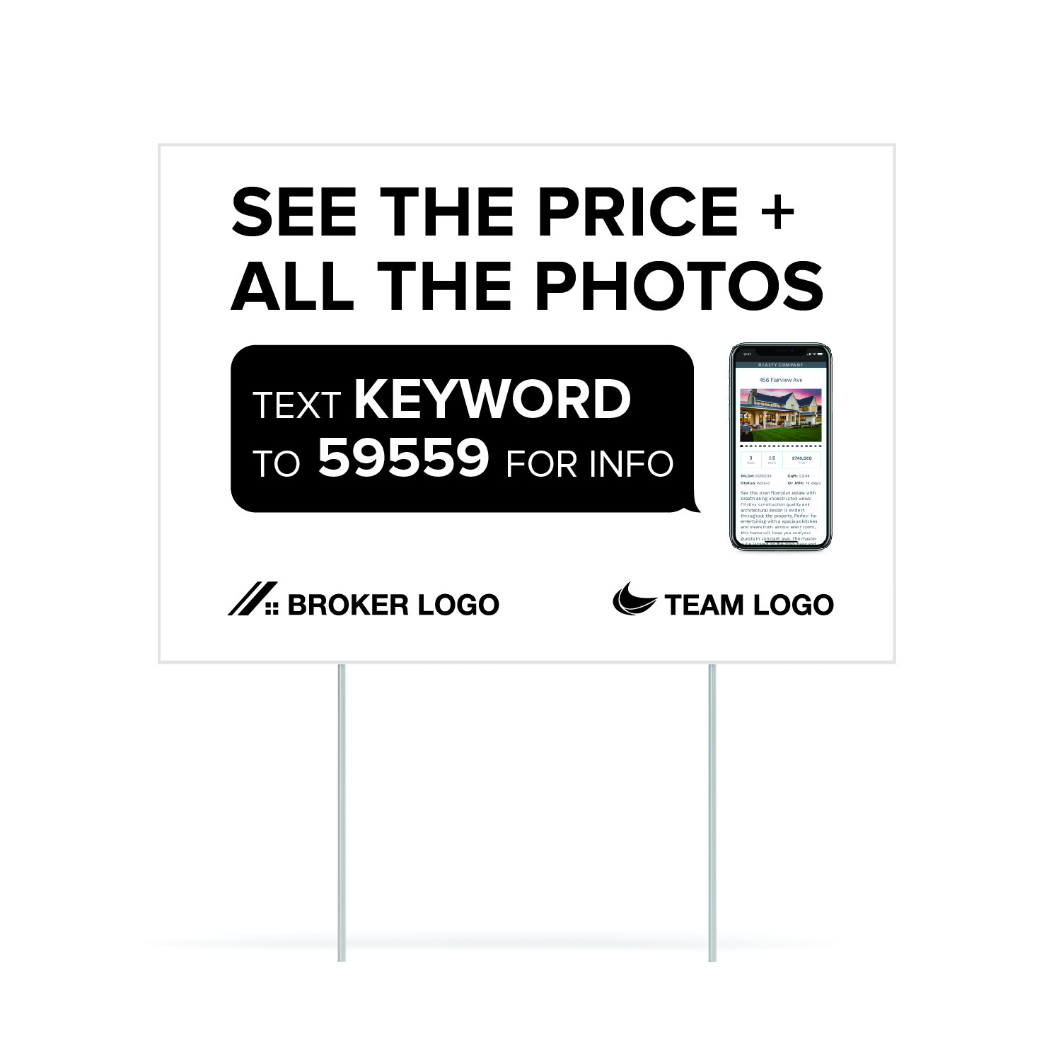 These 24×18″ double-sided yard signs are completely customizable and in full color on 4mm Coroplast with H-stakes. Order one for every listing and keep a few spare signs in the trunk of your car.