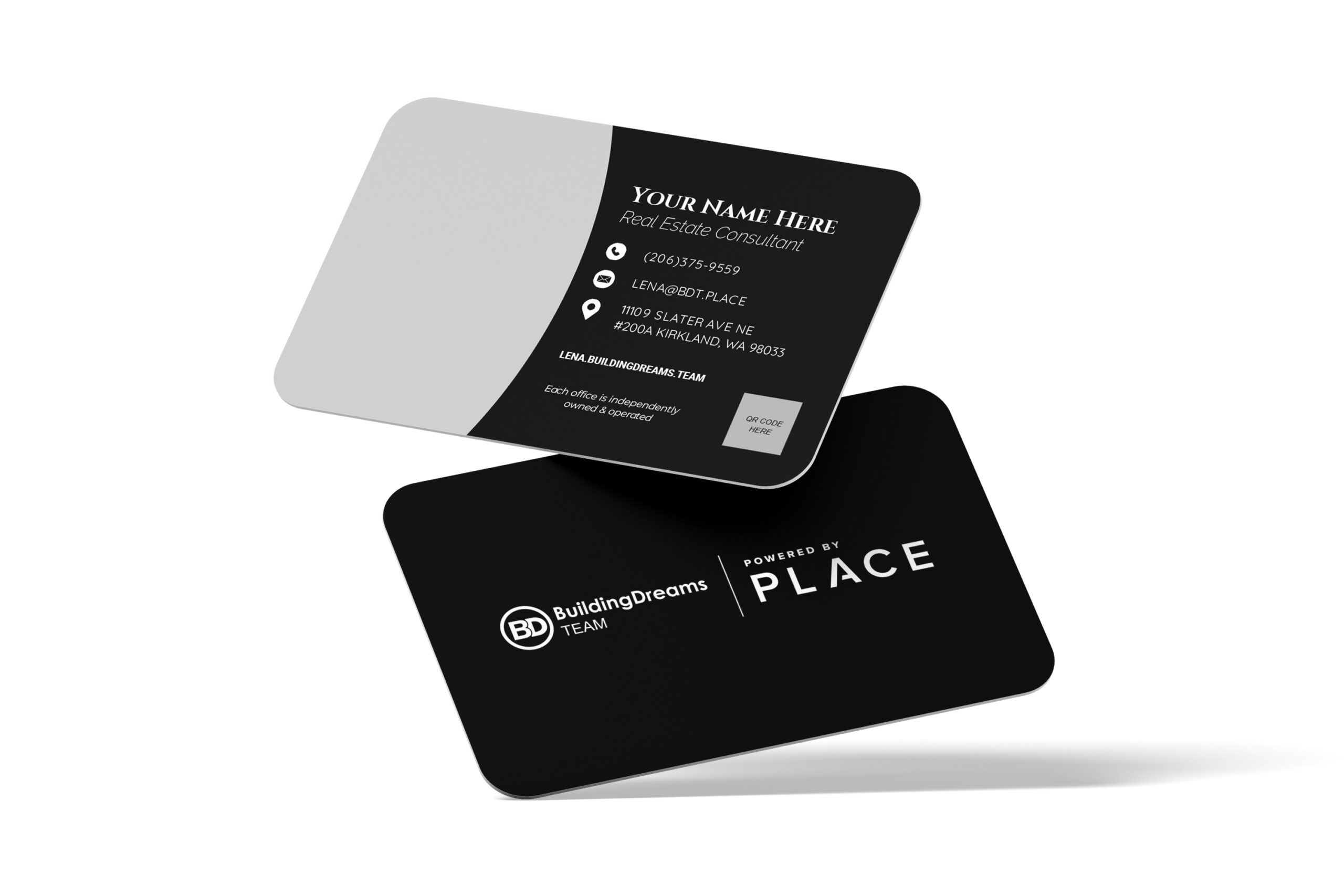PLACE business cards are printed on high-quality 16-point cardstock and then silk laminated for a luxurious feel.  Or if you prefer you can forego the suede lamination and opt for a matte or glossy finish.  Your cards are produced and shipped out in 2-3 business days and will be delivered via USPS or FedEx within 1-5 business days.