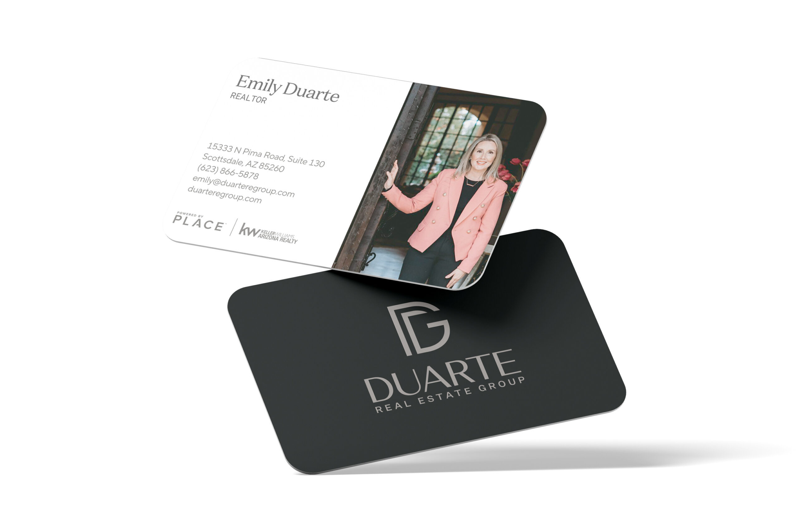 PLACE business cards are printed on high-quality 16-point cardstock and then silk laminated for a luxurious feel.  Or if you prefer you can forego the suede lamination and opt for a matte or glossy finish.  Your cards are produced and shipped out in 2-3 business days and will be delivered via USPS or FedEx within 1-5 business days.