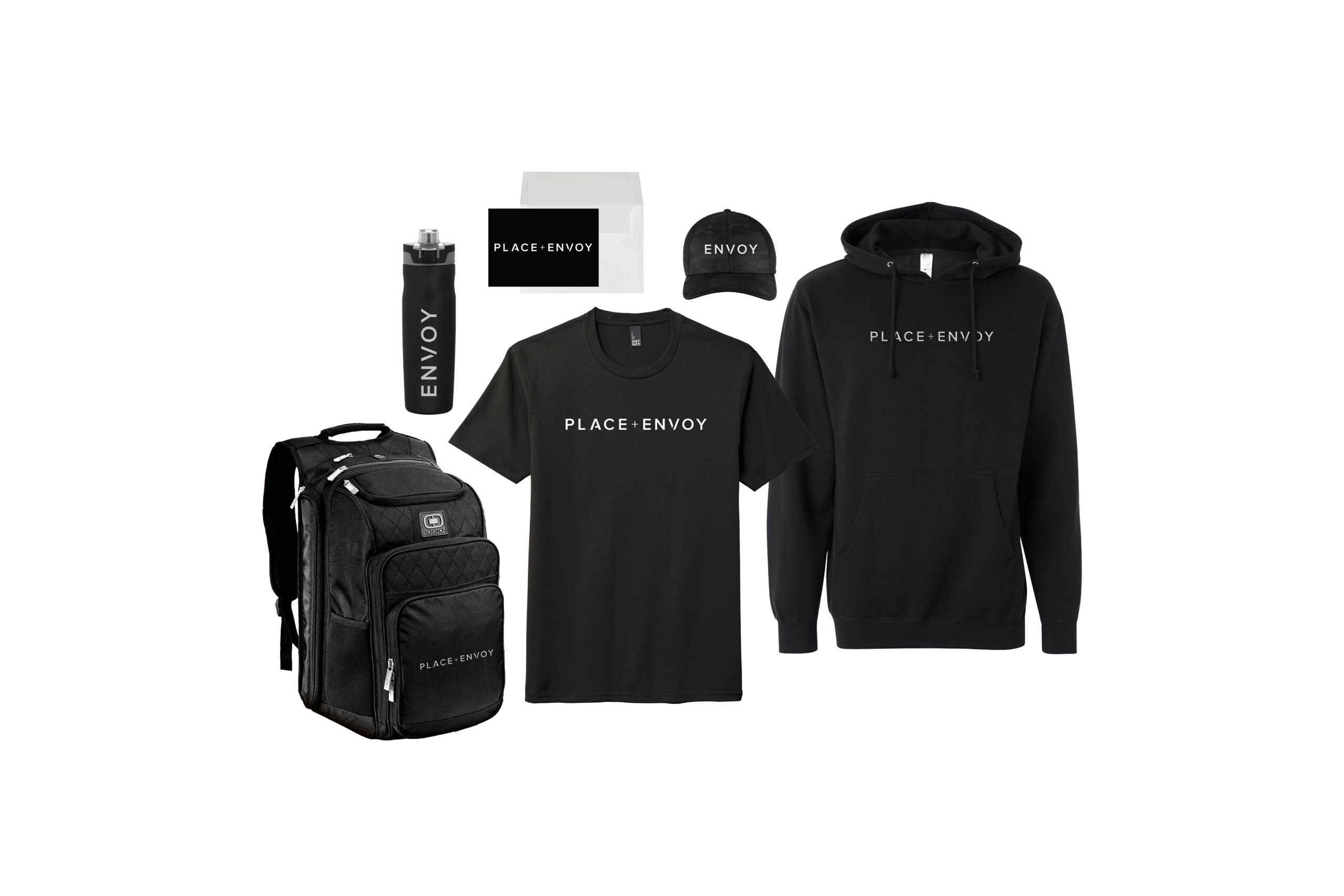 • Black hoodie (embroidered) with the PLACE + ENVOY logo