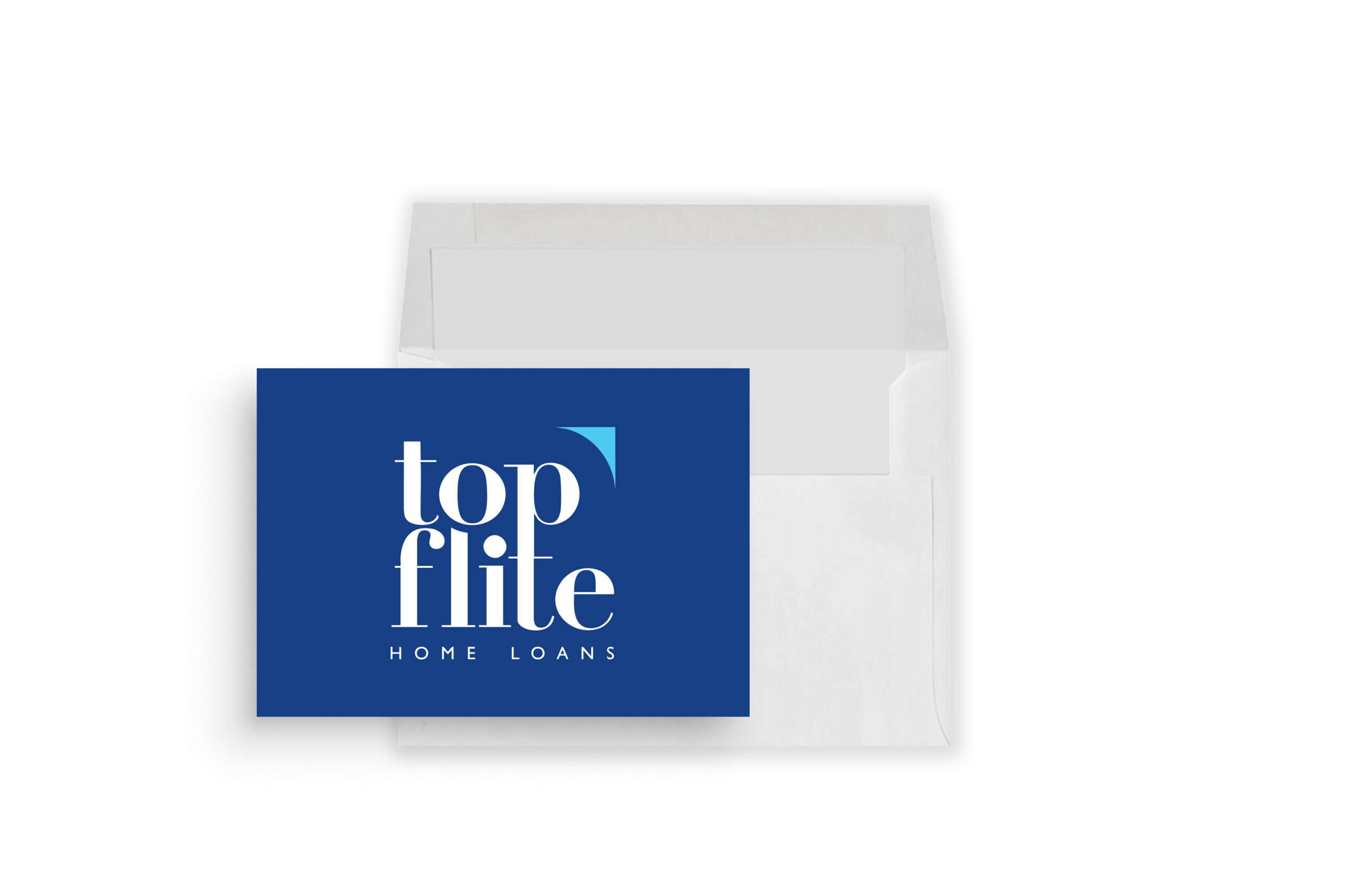 Description: 5×7 Folded Greeting Card with the Top Flite Financial logo on the front; and customizable on the inside for a message to your customers. Includes white A7 Envelopes.